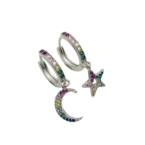 Conjunto Luna y Estrella en Plata Fina 925 con Circones - Símbolo de Iluminación y Guía Conjunto Luna y Estrella en Plata Fina 925 con Circones - Símbolo de Iluminación y Guía